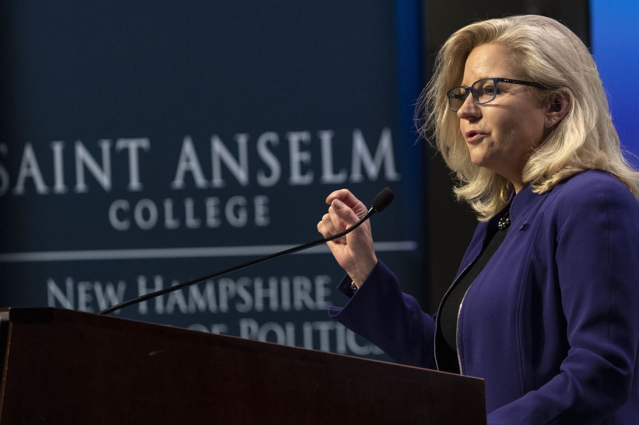 Rep. Cheney urges more U.S. interventions in conflict ... FILE - Rep. Liz Cheney, R-Wyo., speaks at Saint Anselm College, on Nov. 9, 2021, in Manchester, N.H. Wyoming lawmakers voted narrowly Thursday, Feb. 17, 2022, to consider a Donald Trump-backed bill that could affect Cheney's re-election chances by making it harder for voters to register as Republicans ahead of this summer's primary.